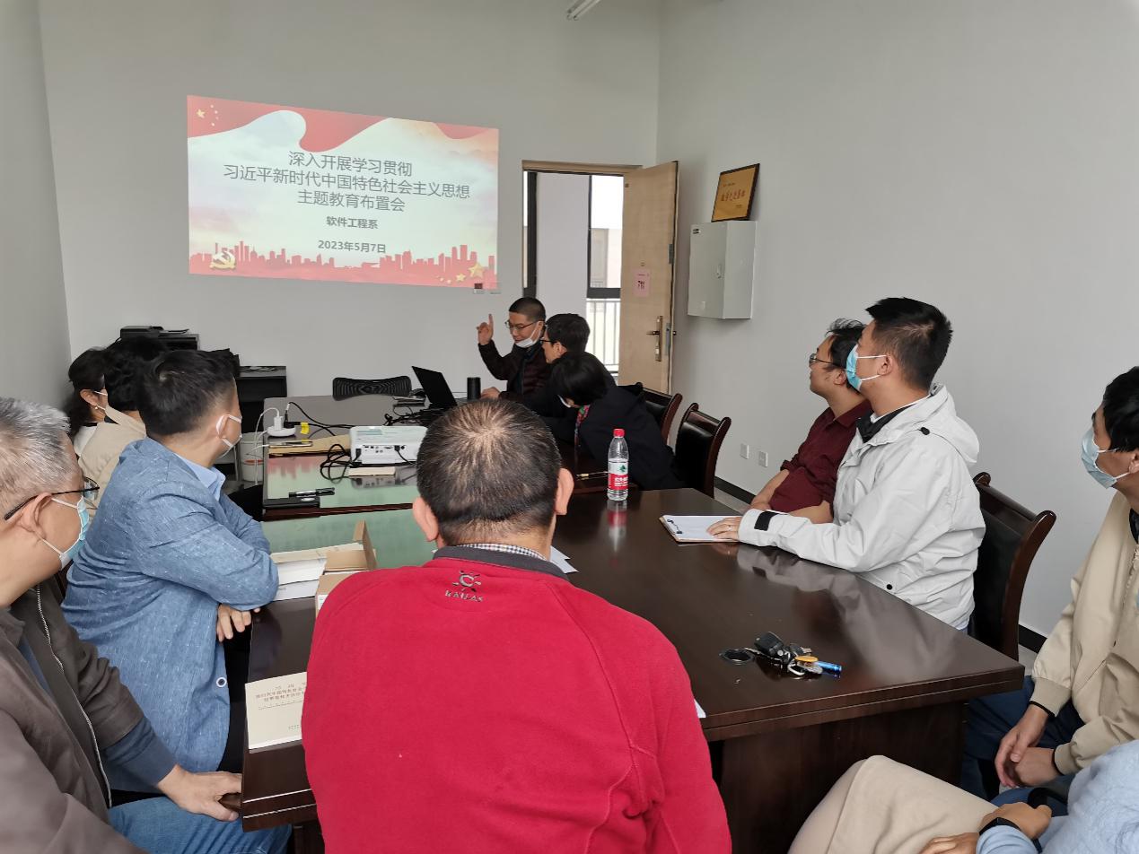 根据学院党委“深入开展学习贯彻习近平新时代中国特色社会主义思想主题教育实施方案”的要求,5月7日下午,软件工程系组织开展全体教师“学习贯彻习近平新时代中国特色社会主义思想主题教育”。