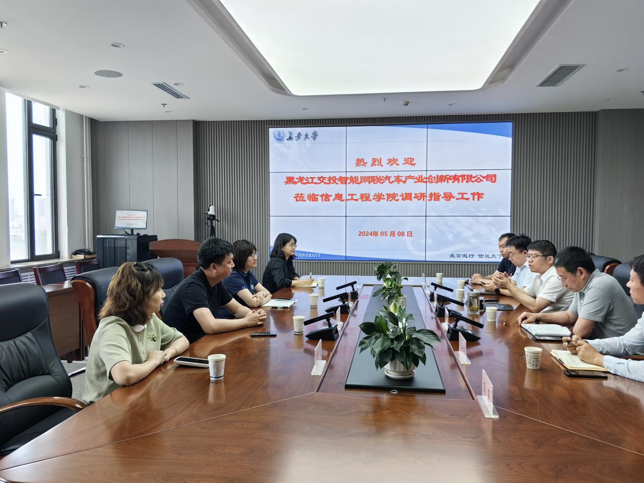 5月8日下午,黑龙江交投智能网联汽车产业创新有限公司董事长王洁明一行4人来365英国官网交流座谈,学院副院长徐志刚出席,学院从事智能网联及自动驾驶封闭场地测试技术等相关方面研究的教师参加此次座谈会。