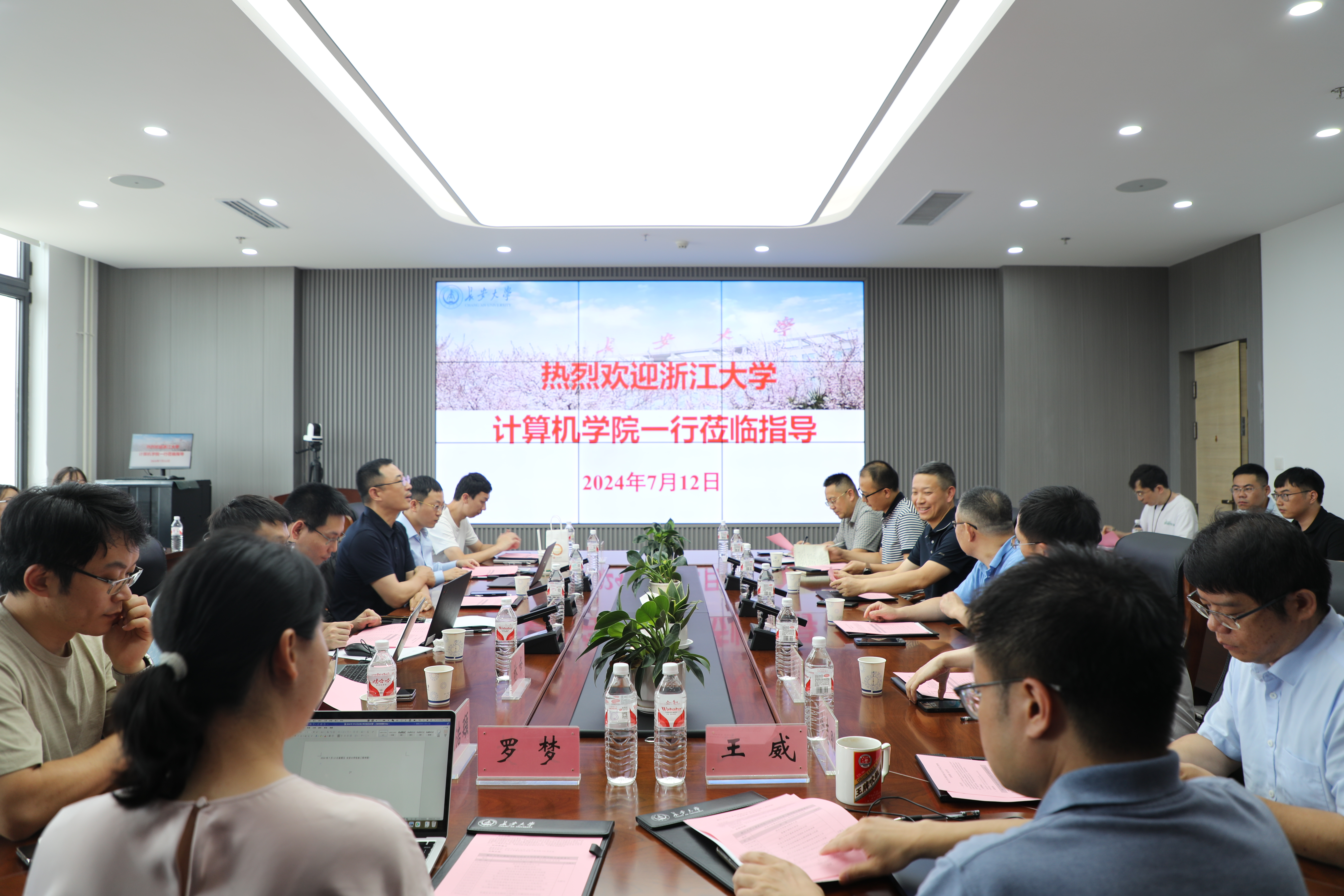 安毅生院长对浙江大学计算机学院的到访表示诚挚欢迎,并从学院近年学科领域与科研成就、专业建设与人才培养、合作交流与社会贡献等方面介绍了学院的建设发展情况。他指出双方在科学研究、社会服务、成果转化等领域存在着广阔的合作交流空间,希望双方今后进一步深化科研合作与学术交流、共促发展。