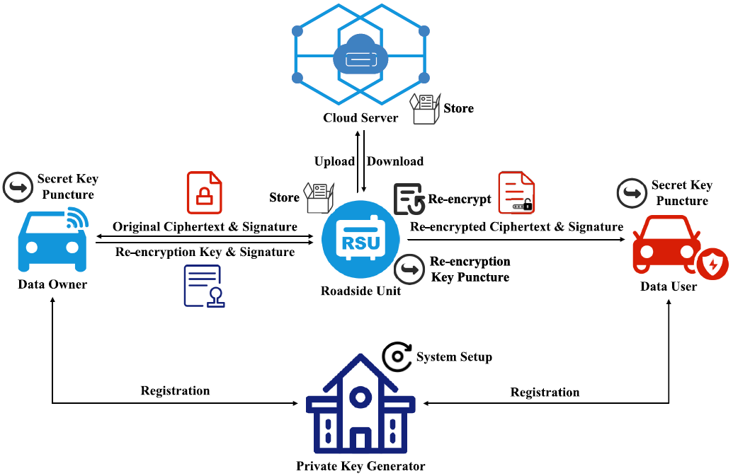 车联网能够通过车辆和其他设备的数据共享实现智能交通流控制和路况预测,提升交通效率和驾驶安全。然而,已有数据共享方案在效率、灵活性和安全性方面仍然存在挑战。论文设计了支持细粒度重加密和撤销的新型加密原语(称为可穿刺身份基细粒度代理重加密),提出了车联网中支持细粒度擦除的灵活选择性数据共享(FSDS-FE)方案。该方案中车辆不仅能够灵活地共享外包交通数据,还可以进行细粒度地擦除。此外,论文通过设计支持可验证外包解密的可穿刺身份基细粒度广播代理重加密机制,构建了增强FSDS-FE方案以优化效率和实用性。该研究为车联网中数据安全治理提供重要的理论支撑。