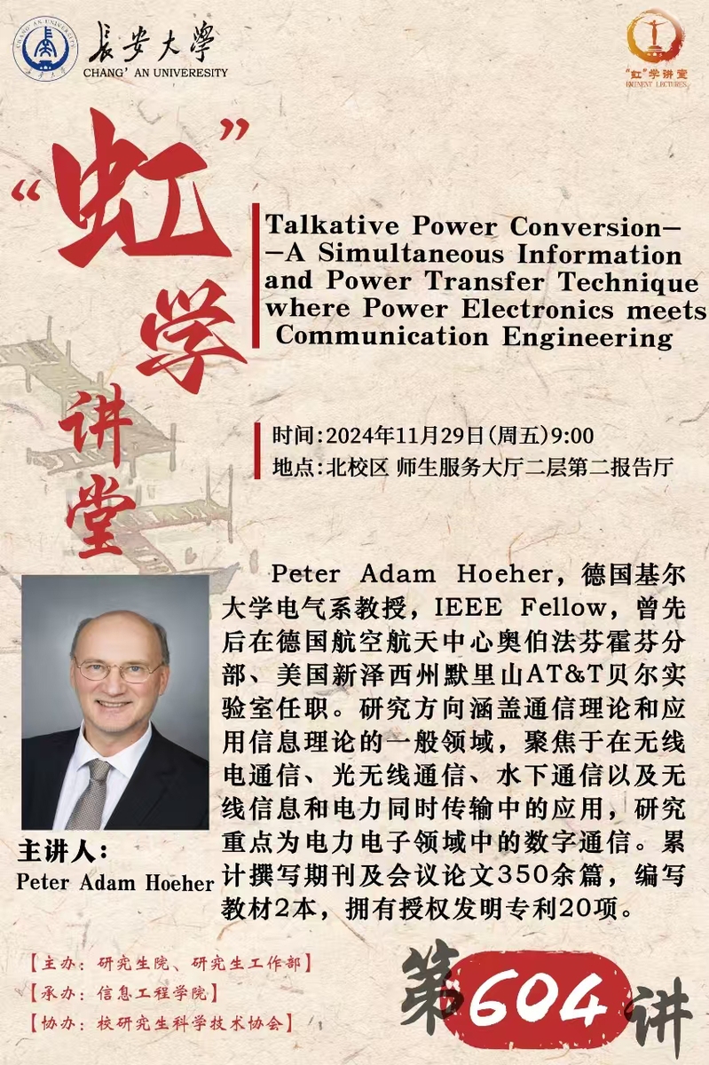 Peter Adam Hoeher,德国基尔大学电气系教授,IEEE Fellow,曾先后在德国航空航天中心奥伯法芬霍芬分部、美国新泽西州默里山AT&T贝尔实验室任职。研究方向涵盖通信理论和应用信息理论的一般领域,聚焦于在无线电通信、光无线通信、水下通信以及无线信息和电力同时传输中的应用,研究重点为电力电子领域中的数字通信。累主讲人:计撰写期刊及会议论文350余篇,编写Peter Adam Hoeher教材2本,拥有授权发明专利20项。