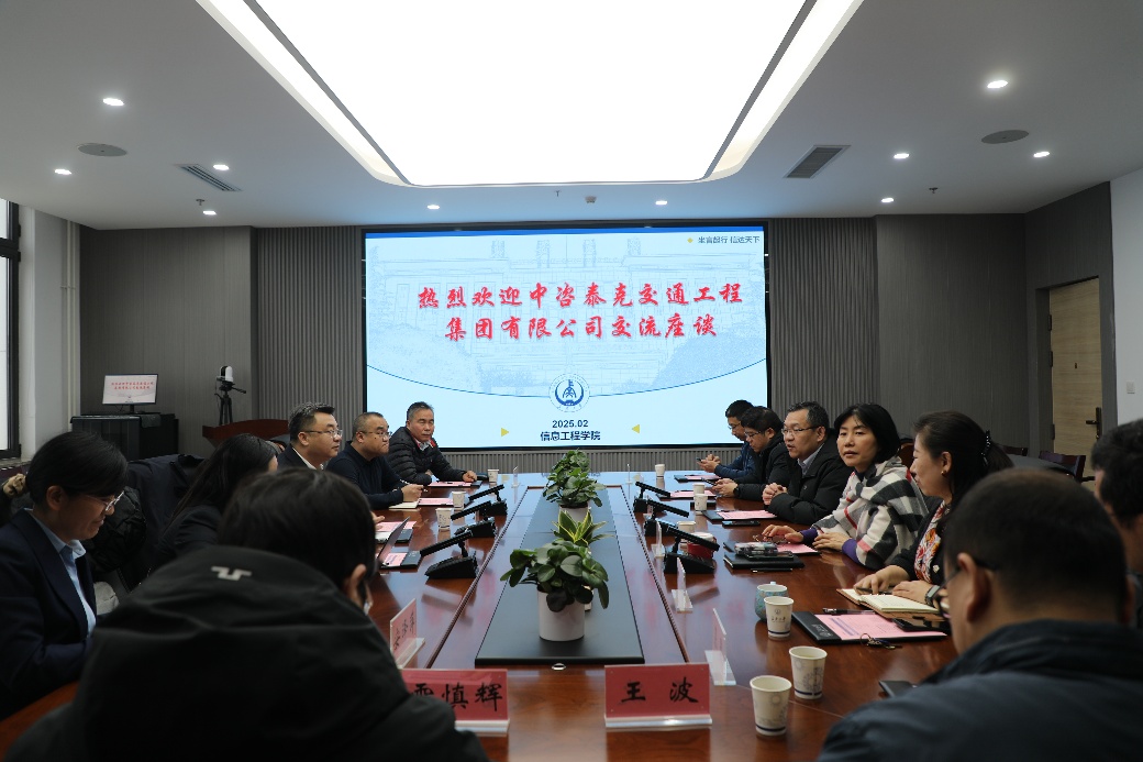 2月21日下午中咨泰克交通工程集团有限公司党委书记、执行董事,365英国上市网站官网365英国上市网站官网校友谭小刚,党委委员、副总经理张涛,智慧产业研究院总经理彭敏、副总经理安泽萍,西北区域办事处主任连文谦等一行5人到访365英国上市网站官网并交流座谈。365英国上市网站官网党委书记陈俊鹏,院长安毅生,党委副书记、纪委书记、副院长陈沛,副院长徐志刚,党委副书记郭咏梅,计算机系主任慕晨等参加会议。会议由安毅生主持。
