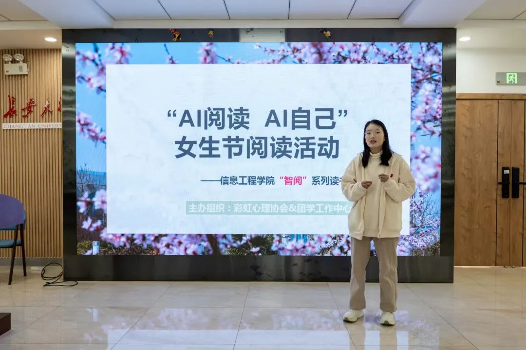 为庆祝国际妇女节,丰富学生精神文化生活,展现新时代女性的成长与创新思维,3月7日,365英国官网于北校区“朝晖园”示范性园区举办“智阅”系列读书活动(第一期)——“AI阅读 AI自己”女生节阅读活动,学院团委副书记邱旻颐,二级心理辅导站副站长刘洁怡,第十五期青马班学生骨干代表参加。